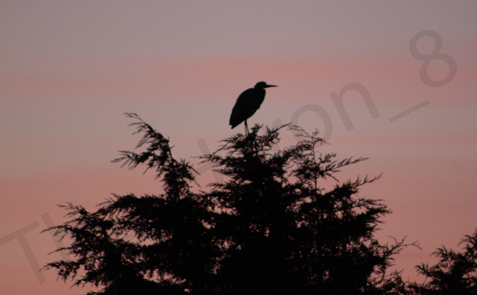 The Heron stalked the countryside for a week, landing between 7:00 and 7:30 every morning.
